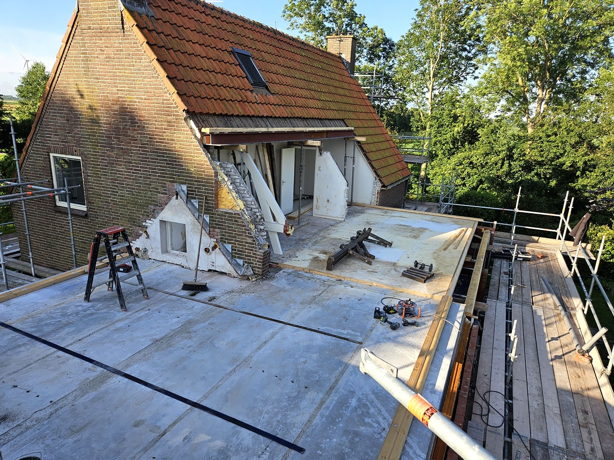 Wij zijn gespecialiseerd in het naadloos aansluiten van nieuwe elementen op bestaande bouw. Onze expertise omvat kapconstructies, gevelelementen, verdiepingsvloeren en dakkapellen, waarbij we zorgen voor een perfecte integratie met de bestaande structuur. Dit resulteert in een duurzame en esthetisch verantwoorde uitbreiding van uw woning in Middenmeer.