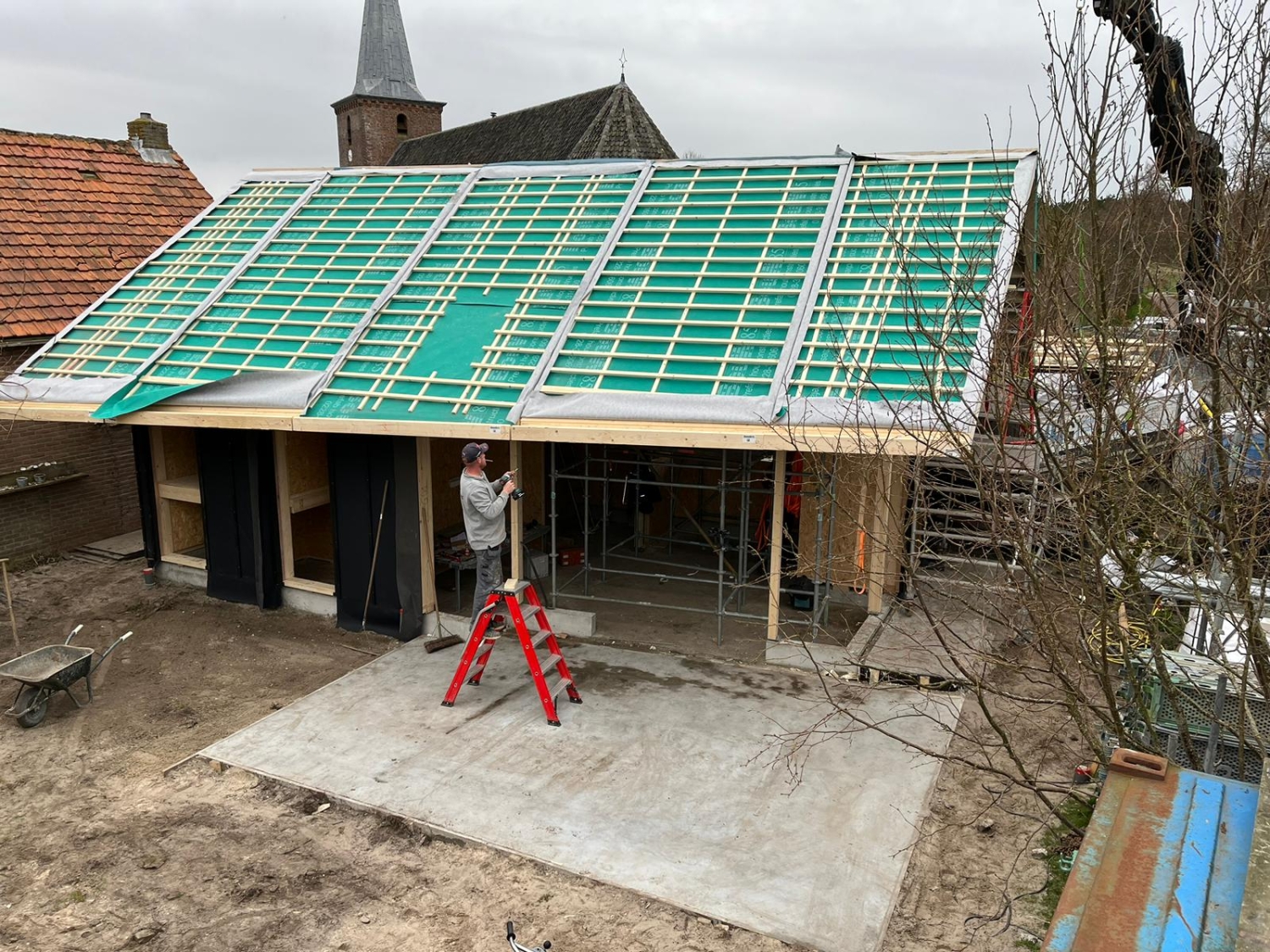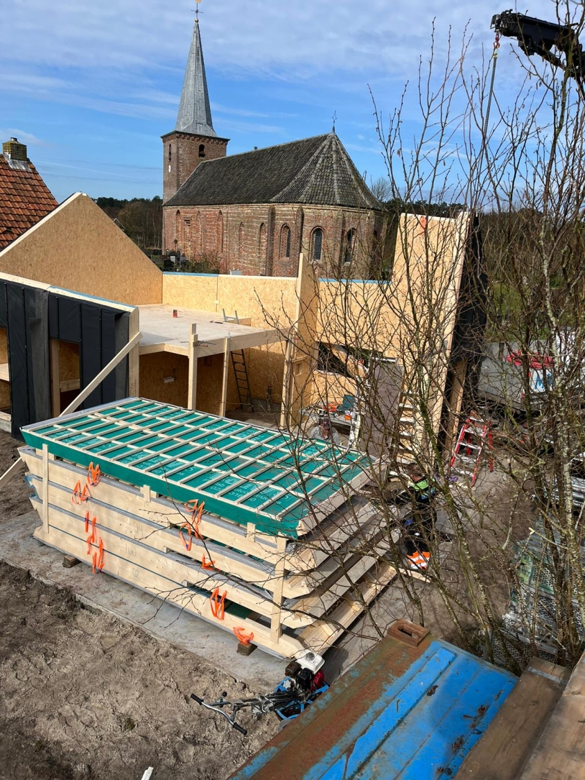 Deze woning is voorzien van prefab kapelementen, gevelelementen, een verdiepingsvloer en binnenwanden.